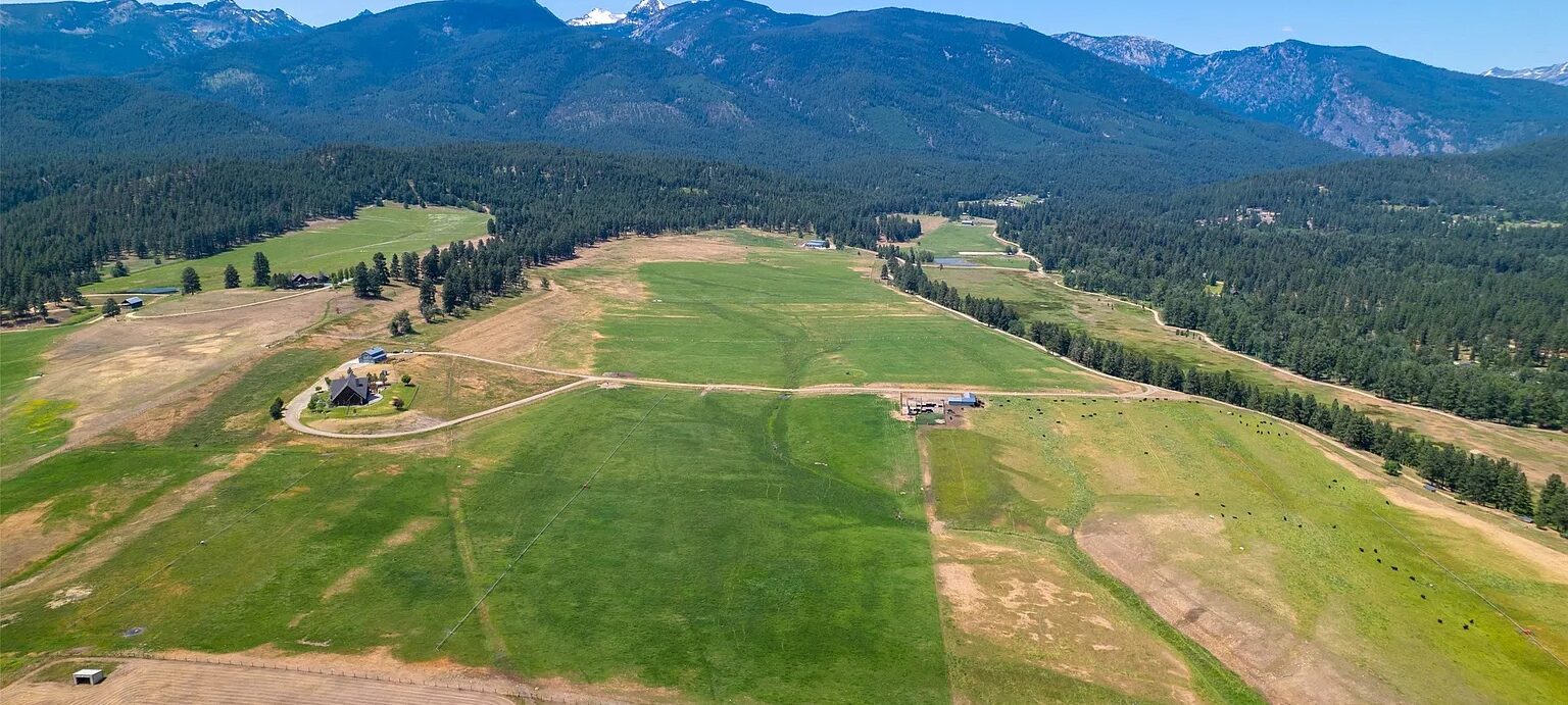 Located in the scenic Bitterroot Valley, the Two Feathers Ranch is an extraordinary 357.21 acre estate near Darby, Montana, offering a combination of luxury and rugged natural beauty. Situated on the southern portion of the historic Chief Joseph Ranch, this property boasts a gated entry and a range of amenities including water rights for the irrigated meadows, shared border with U.S. Forest Service land on two sides and 2,500 feet of frontage on beautiful Tin Cup Creek and a private lake. The main lodge-style home is a luxurious 7,180-square-foot residence with custom finishes and an array of high-end amenities. Most of the art, décor, bronzes, and home furnishings are included in the sale making this a move in ready property for the discerning buyer. Guest quarters, manager’s home, ranch buildings, horse arena and more.
